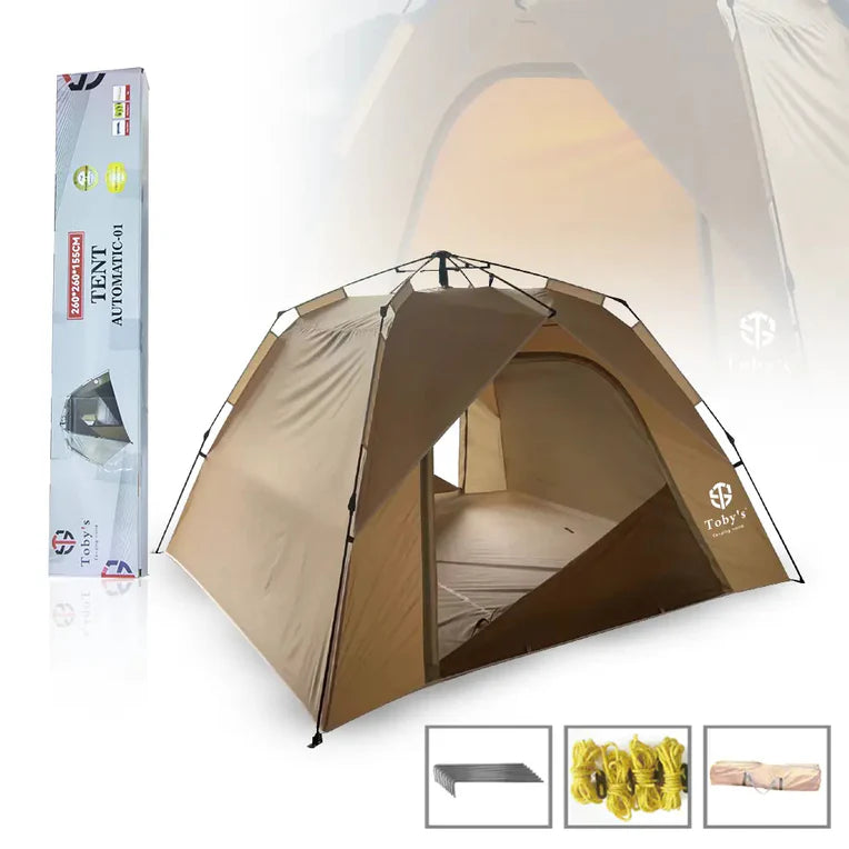 Perfect for small group outdoor adventures, this package includes all the essential gear for a comfortable camping experience. It features an easy-to-set-up 4-person pop-up tent, individual sleeping and seating arrangements, and a shared table—making it ideal for hassle-free camping trips.