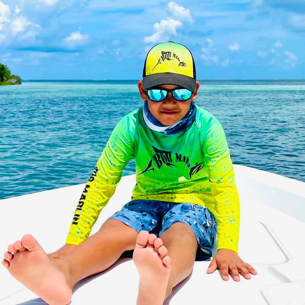 The Bob Marlin YOUTH collection – a perfect blend of style and functionality for the young angler. Inspired by the stunning Mahi Mahi, this statement piece pays homage to the beauty of marine life.