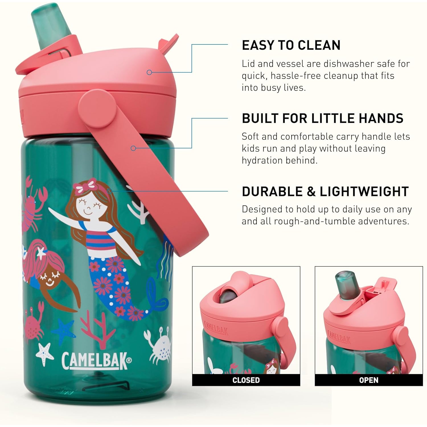 Designed with young adventurers in mind, the CAMELBAK Kids Thrive Flip Straw offers hassle-free hydration for every day. Whether heading to school, embarking on a family trip, or conquering the playground, kids can simply flip, bite, and sip using the cleverly engineered straw mechanism. Thanks to double-wall vacuum insulation, drinks stay refreshingly cold for hours—perfect for active lifestyles and busy schedules. Parents will appreciate the leak-proof design that keeps backpacks dry and surfaces mess-free while children stay hydrated throughout their activities. Crafted from durable stainless steel and equipped with a comfortable carry handle that easily slips into cup holders or backpack pockets, this bottle is built to withstand endless playdates and adventures.