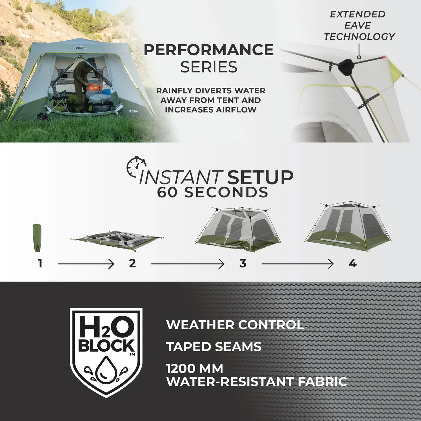 CORE EQUIPMENT 6 Person Instant Cabin Performance Tent 10 X 9