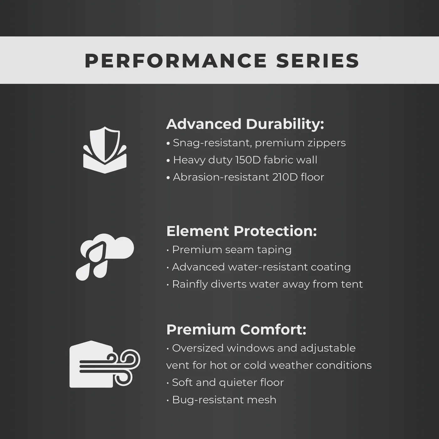 Set up camp in a flash with the CORE Instant Cabin Performance Tent, designed for families and groups who value convenience without sacrificing comfort. Pre-attached poles lock into place, allowing you to pitch your shelter in under a minute—ideal after long days of hiking or when rain is on the horizon. The spacious 10x9-foot interior fits up to six campers plus gear, easily accommodating a queen-size air bed so everyone gets a good night’s rest. H20 Block Technology ensures peace of mind during unpredictable weather thanks to water-repellent fabric, fully taped seams, and sealed windows that keep moisture out. Smart features like an adjustable lower vent and Extended Eave Technology maintain airflow while minimizing drafts for comfortable nights inside. Keep essentials organized using the hanging organizer and gear loft, reducing clutter whether you’re storing lanterns or small electronics. With snag-resistant zippers and an abrasion-resistant floor built for rugged adventures—and all necessary components included right in the carry bag—this tent brings reliability and simplicity to every outdoor escape.