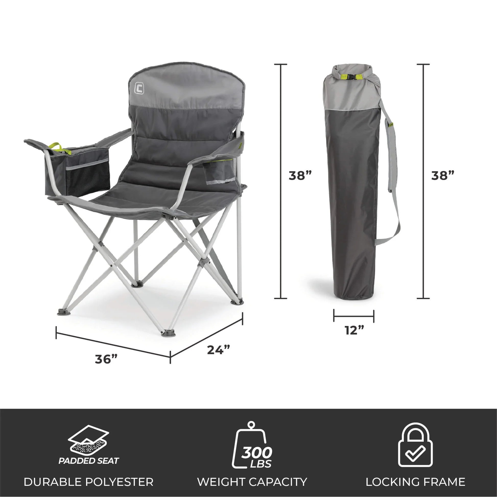 CORE EQUIPMENT Folding Padded Cooler Quad Camping Chair