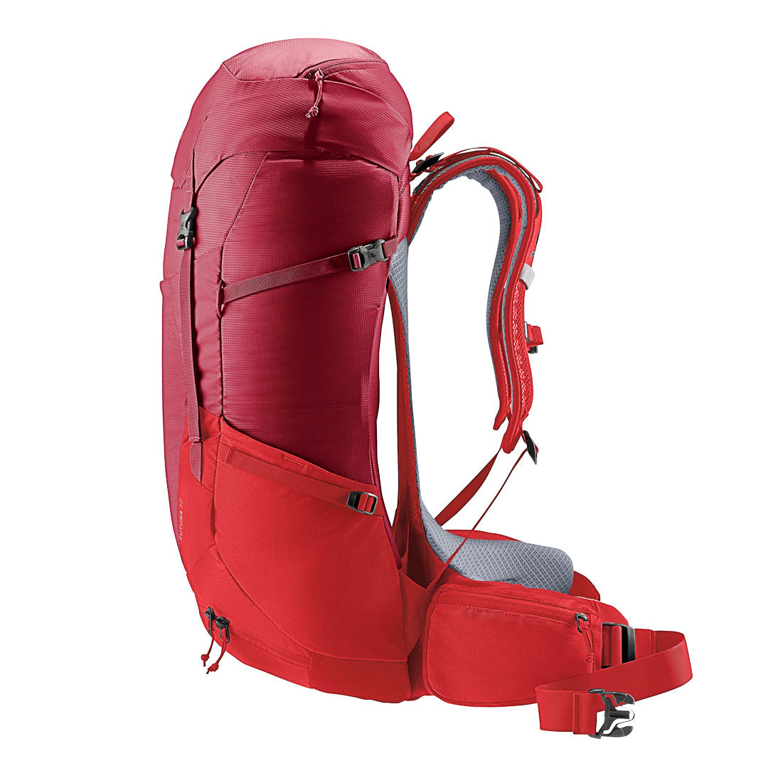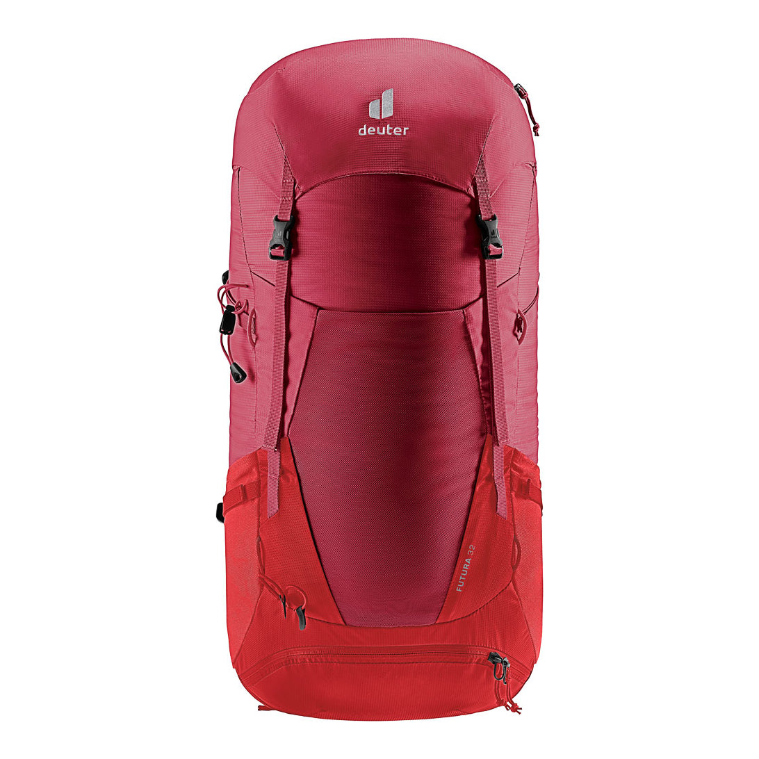 Designed for adventurers who demand comfort and practicality, the Deuter Futura 32 Backpack in masala-cherry is tailored to enhance both long day treks and multi-day journeys. The innovative Aircomfort carry system, coupled with a flexible spring steel frame, delivers outstanding ventilation—reducing sweat by up to 25% thanks to Deuter's patented 3-side mesh back design. Thoughtfully organized compartments include a bottom access section for easy packing, spacious lid storage, stretch side pockets for water bottles or snacks, and dedicated slots for valuables and hydration systems (up to 3 liters). Trekking pole attachments, docking loops for a helmet holder, and an integrated rain cover ensure readiness for any trail condition. Supportive padded hip fins with zippered pockets keep essentials close at hand while stabilizer straps and an adjustable sternum strap fine-tune the fit as you move. Crafted from recycled materials that balance durability with sustainability, this backpack offers ergonomic comfort without sacrificing freedom of movement—making it a trusted companion on every hiking adventure.