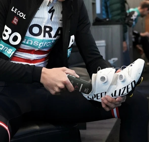 Funky Feet is a dual-action deodorizing premium shoe spray that eliminates and protects against sweaty nasty smells. Use it to freshen up your shoes and other equipment. The spray absorbs moisture and replaces unwanted smells with a pleasant, Funky Feet can be used on all kinds of materials, including leather, suede, (poly)cotton, synthetics, all sorts of technical fabrics, liners, softshell and neoprene.