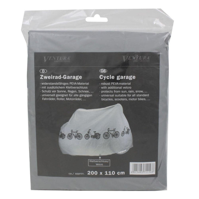 With the bicycle garage from Ventura you can keep your bicycle dry and rust free. The extra large size fits over entire bike and close to the ground. The garage also incorporates a snap at the bottom to prevent cover from blowing off on windy days.