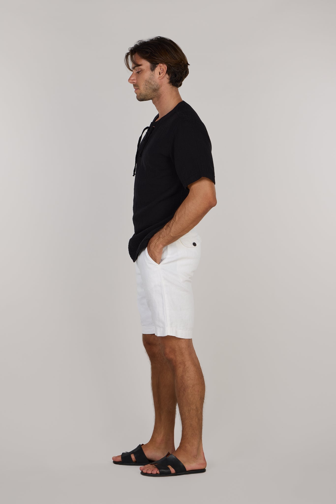 Elegant and simple, our men’s William Shorts shorts come in a crisp black color that never goes out of style. Made with a relaxed fit silhouette that wears comfortably all day long.