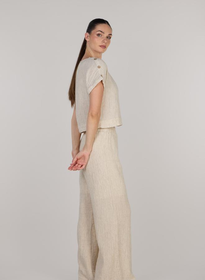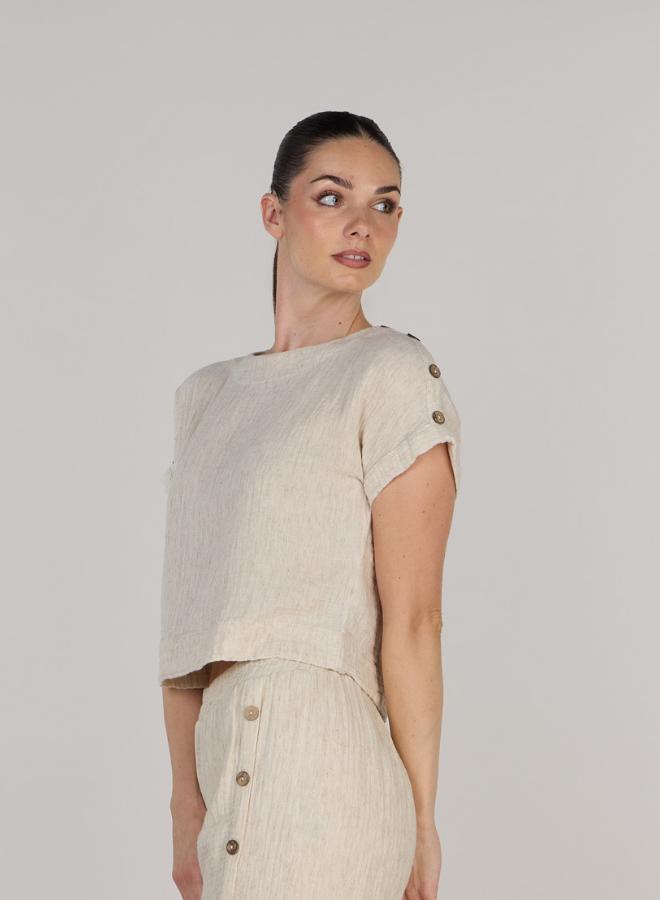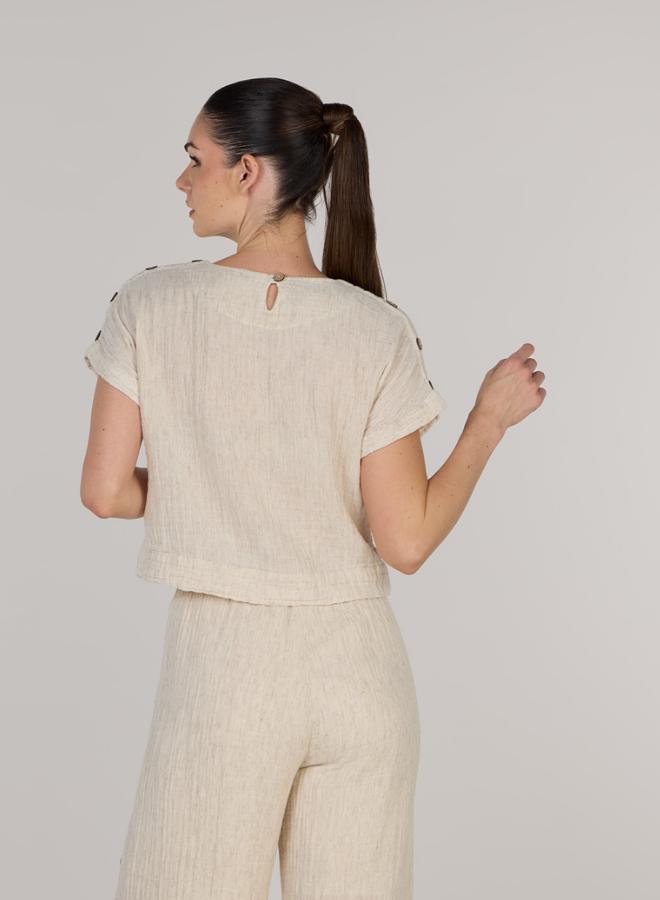 This stylish crop top offering a comfortable and breathable fit for any casual occasion. The cropped design adds a trendy flair, making it a versatile wardrobe essential for warm weather.