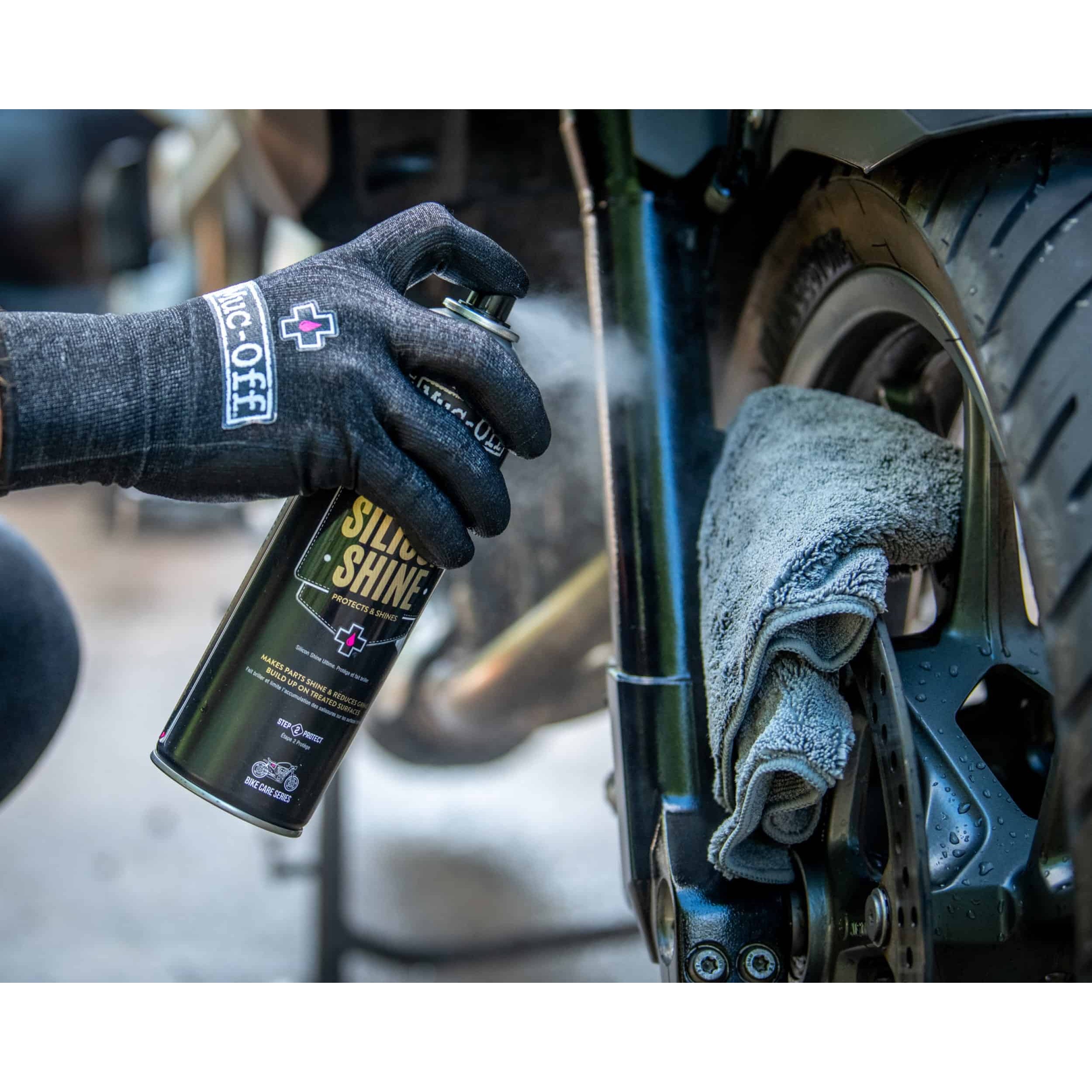 Give your bike or motorbike a professional finish with Muc-Off Silicon Shine. This innovative solution does more than just polish—it creates a slick, protective layer that minimizes friction on suspension components for smoother rides. By reducing dirt adhesion, it keeps your ride cleaner between washes and performing at its best. Whether preparing for the next adventure or keeping your machine in showroom condition, this product is an essential addition to any rider’s maintenance routine.