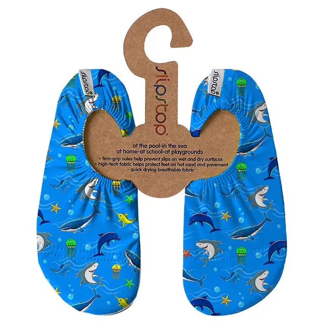 Non-slip soles help prevent slips on wet & dry surfaces. Its high tech soles protect feet on hot sand & floors and provide protection from infection such as verrucas. Light & flexible design makes Slipstop super easy to swim in. Slipstop slippers are light, flexible and comfortable, just like walking barefoot! The slippers have a breathable and quick-drying fabric and a non-slip sole. , , Slipstop slippers are suitable for use in kindergarten, gym, swimming pool, beach, ocean, home, bathroom, indoor playground, school and many other places. Slippers also protect your feet from hot sand and tiles, as well as sharp stones. Reinforced front helps protect those precious toes from sharp objects and rough floors. Unique patented design in many exclusive fun and colourful Slipstop prints. Designed for all ages from baby to adult ensuring we have the whole family covered.